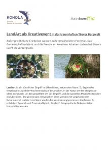 Ganz aktuell sind die beiden Kreativevents: »Feuerskulptur« und »LandArt«, die in den beiden Broschüren ausführlich beschrieben sind.