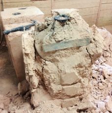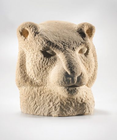 Bei der Arbeit am Sandstein wird sorgfältig und vorsichtig planerisch vorgehend etwas weggenommen bis der Januskopf hervortritt. Bei dieser Darstellung wird nicht ein und derselbe Kopf auf den gegenüberliegenden Seiten dargestellt, sondern hier zeigt sich ein Tigerkopf und entgegengesetzt blickt ein menschlicher Kopf auf uns. Die Arbeitsspuren mit verschiedenen Werkzeugen geben dem Januskopf eine lebendige Oberfläche.