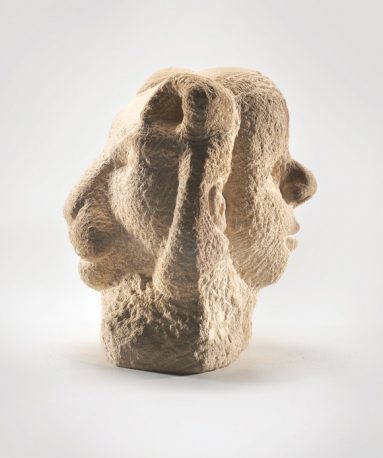 Beim Januskopf verwende ich ein Tonmodell als Anhaltspunkt. Die eigentliche Arbeit besteht jedoch für mich darin, den Wesenskern, der im Stein steckt herauszuarbeiten.